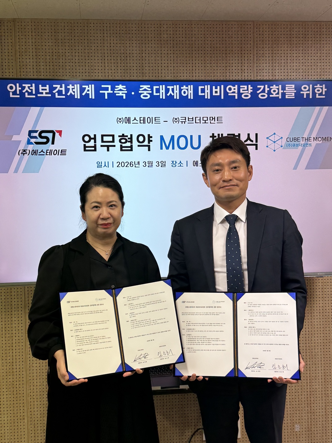 보도자료 + 2026년 3월 3일 에스테이트 사무실에서 온라인 직무교육 및 경비교육 전문기업인 (주)에스테이트와 안전관리 시스템 전문기업인 (주)큐브더모먼트가 중대재해처벌법 대응을 위한 업무협약식을 가졌다.양사는 이번 업무협약을 통해 공동 마케팅, 교육 콘텐츠 제공, 안전 분야 일자리 창출 등 3가지 핵심 협력 모델을 중심으로.. (주)에스테이트-(주)큐브더모먼트, 중대재해처벌법 대응을 위한 업무협약 ESG실천 기획과 안전관리 시스템의 결합…‘S(Social)’ 가치 극대화“공연·축제에서 시작, 문화산업 전반에 안전과 ESG 표준 제시할 것”㈜미래를보다와 ㈜큐브더모먼트가 안전한 축제문화 조성과 ESG 가치 확산을 위해 업무협약(MOU)을 체결했다. [사진 ㈜큐브더모먼트]공연·스포츠 콘텐츠 기획의 ESG 실천을 선도하는 엔.. ㈜미래를 보다-㈜큐브더모먼트, ‘공연·스포츠 안전 및 ESG경영 확산’ 위해 손잡다 한국주택관리협회-큐브더모먼트 공동주택관리산업 안전보건체계 구축을 위한 MOU체결 안전 분야 전문기업 참여해 중대재해 예방 민관 협력 기반 마련중대재해‧산업안전 예방 솔루션 무상 제공, 안전보건 현장 교육 지원유성훈 금천구청장(사진 가운데)이 재능기부식을 마치고, ㈜휴디스텍 황찬식 대표(왼쪽), ㈜큐브더모먼트 임소희 대표(오른쪽)와 기념촬영을 하고 있다. 사진=금천.. 금천구, ‘중대재해 예방 솔루션 재능기부식’ 개최 [천지일보=남승우 기자] 임소희 ㈜큐브 더모먼트 대표가 11일 서울 용산구 백범김구기념관에서 열린 ‘제10회 2025 대한민국 유망중소기업·ESG·공공기관대상 시상식’에서 안전 클라우드 플랫폼 서비스 부문을 수상, 기념촬영을 하고 있다. 이번 시상식은 천지일보와 ISO국제심사원협회가 공동 주최했다. ⓒ천지일보 2025... [2025유망중소기업대상] ㈜큐브더모먼트, AI 기반 안전관리 혁신… 중대재해 대응 플랫폼 선도