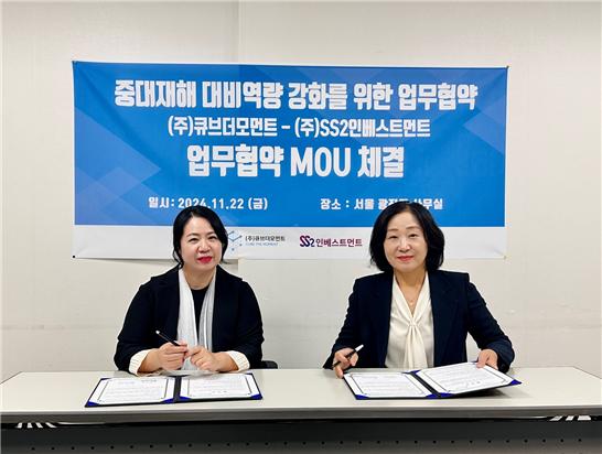 중대재해처벌법 대응 크라우드서비스 활성화를 위해 맞손을 잡다. 큐브더모먼트 대표 임소희, SS2인베스트먼트 대표 신향숙 / SS2인베스트먼트 제공 ESG 전문 엑셀러레이터인 SS2인베스트먼트는 중대재해처벌법 관리솔루션 서비스를 제공하는 플랫폼 개발 기업인 큐브더모먼트와 지난 11월 22일 업무협약(MOU)을 체결했다. 이...